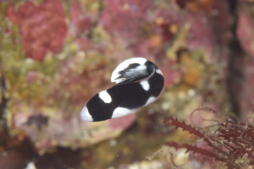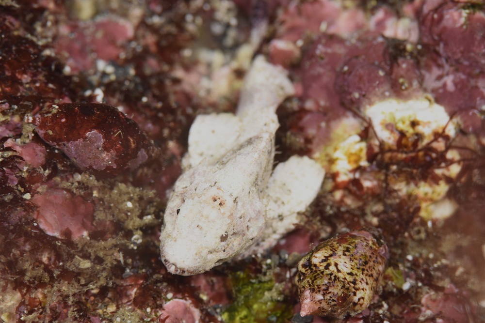 石の上にちょこんと乗っているサツマカサゴ幼魚のミニサイズ
