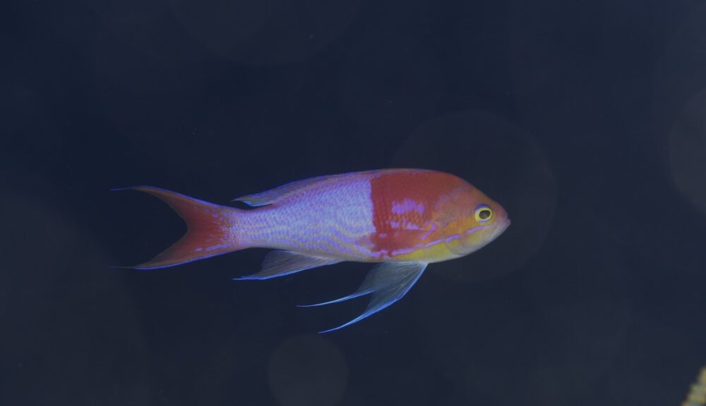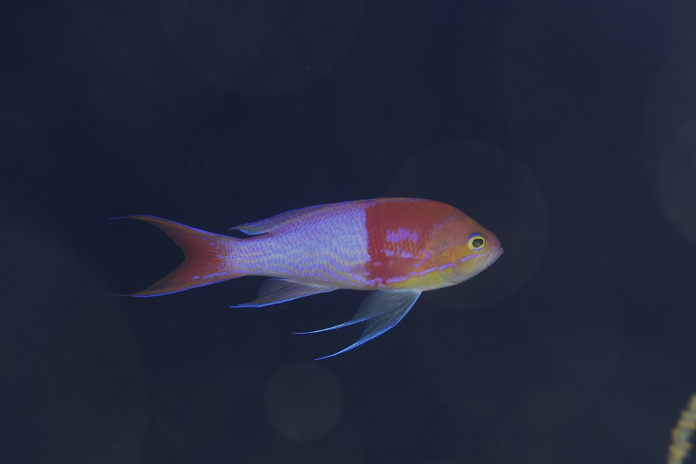 ひれ先の青いラインも美しい、婚姻色がしばらく見れそうです。