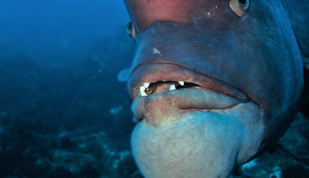 アオブダイは潜降岩の穴、水深4mの浅場に