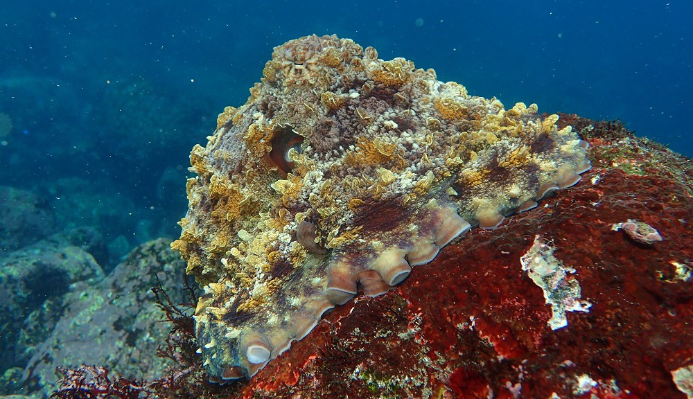 オハグロベラはヒレを全開に開いて、海藻に隠れ就寝中