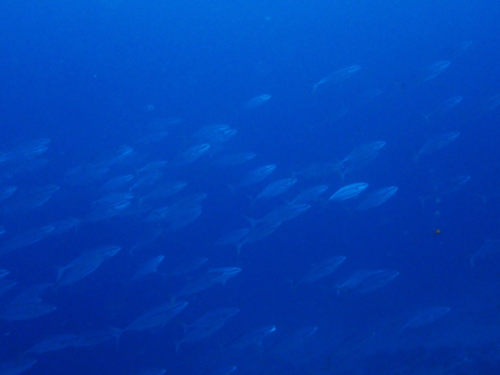 クエ穴の中を覗いているとイナダの群れがすぐ後ろに
