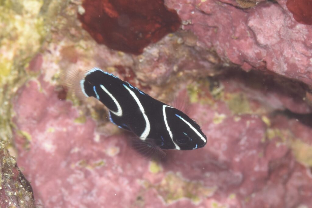 サザナミヤッコ幼魚は岩の亀裂を出たり入ったり