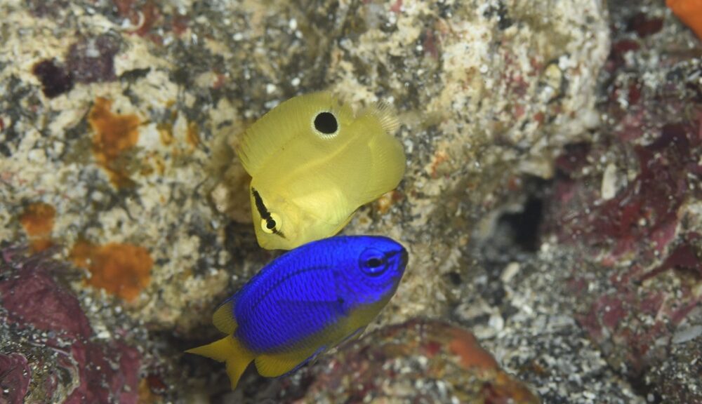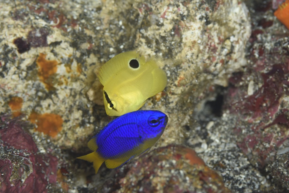 ミスジスズメダイ、シテンヤッコ、イロカエルアンコウ