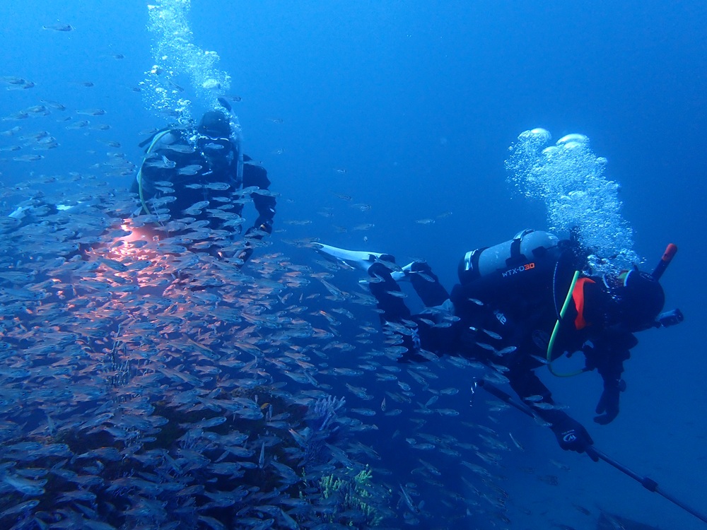 ダイビングコンディション 12月29日(月)富戸・海洋情報 2025年12月29日 p-fish Check 12月29日(月)ポイント:富戸天気:晴れ 気温:14℃ 水温:17~18℃透視度:12~15m 海洋状況:良好 本日、富戸ボート&ビーチです。大変穏やかなコンディションで透視度も良好天気も良かったので光が差し込み綺麗ボートは漁礁ピラミッドへ漁礁全体を覆うクロホシイシモチ中にはキンメモドキの群れ圧倒的な群れがダイバーを包む安全停止中に見つけたカイワリ幼魚がブイ下ロープに付き可愛い姿が見れました。ビーチも富戸ホールに光が差し込み群れも多く、最高です! カイワリ幼魚 ボートポイント・漁礁ピラミッド 光が差し込む富戸ホール ハタタテダイ