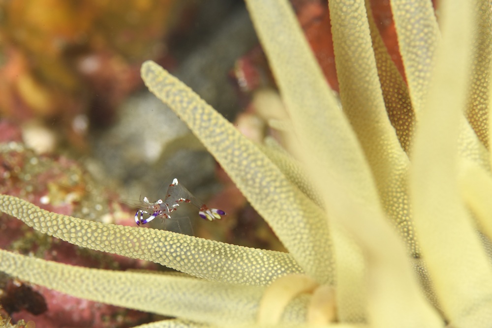 ハクセンアカホシカクレエビとスナイソギンチャク