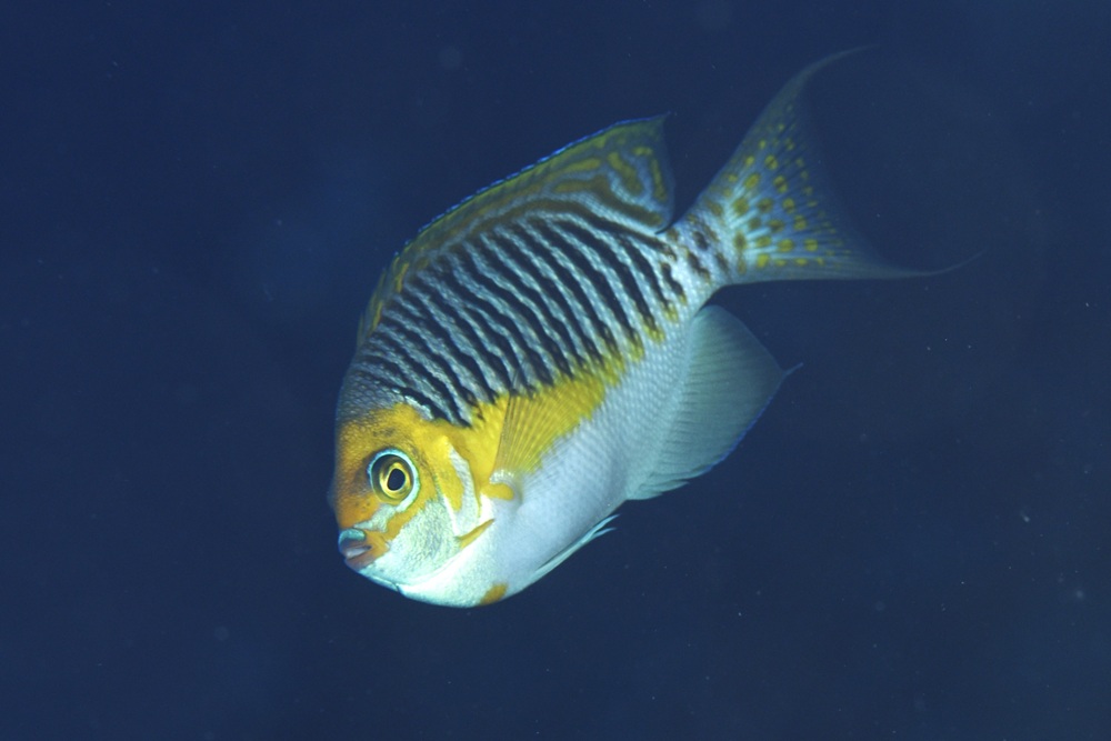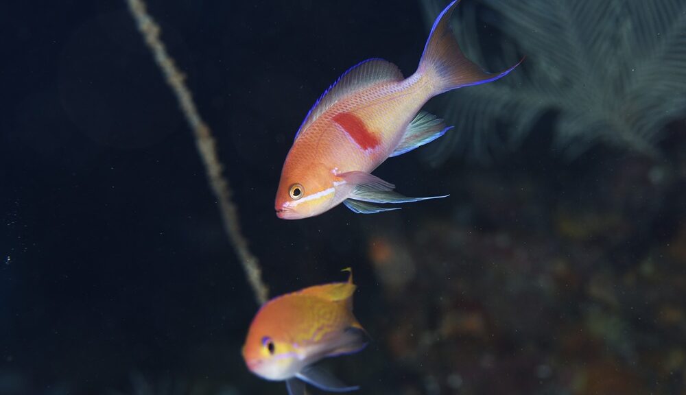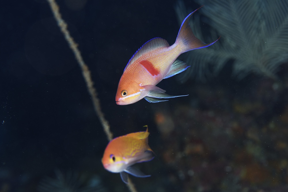 少し水深を落とすと幼魚、メス、オスが群れを作り