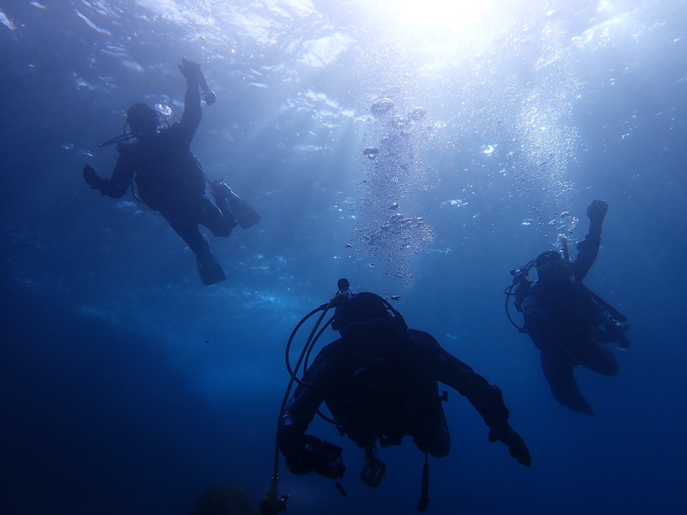 1ダイブ目は深場から1匹のハンマーヘッドシャークが接近