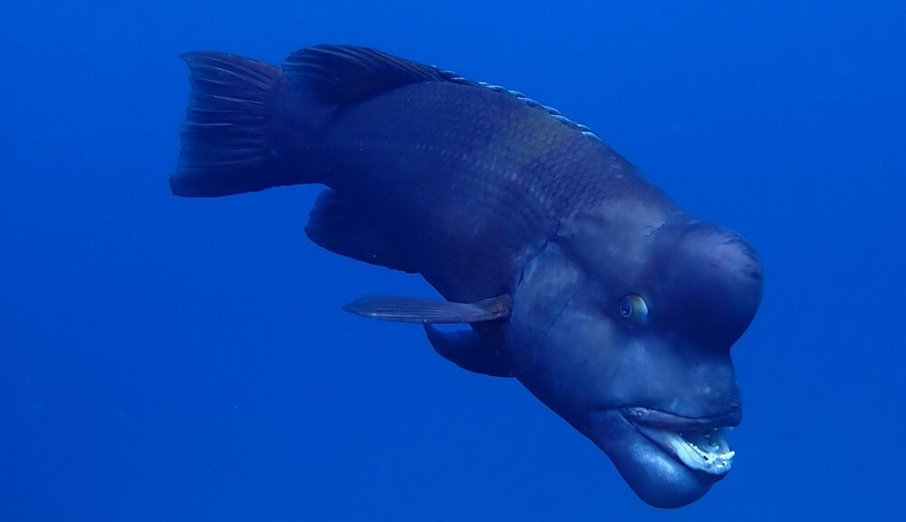 特徴である鼻先の青いラインは低水温になると消えるようで