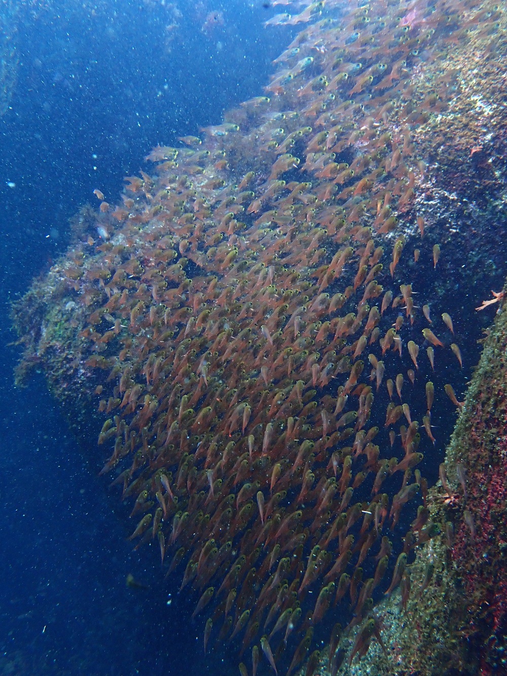クラゲ、サルパのプラプランクトンが視界を妨げるほど